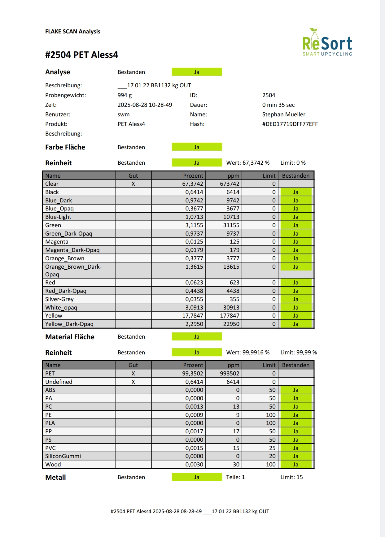 | 080211 | R-PET | klar ex DS, weiss opak: <400ppm, TDS ist Näherungswert, | | |